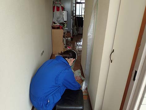 血液の量がかなり多かった為悪臭が部屋の外まで漏れており、近隣の方の事も考えいち早く作業を終わらせる必要がありました。
