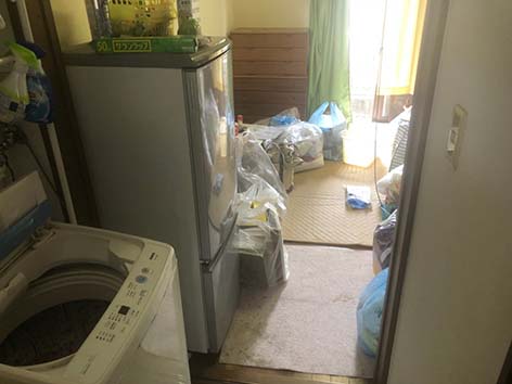 部屋は特に散らかっているわけではなく、生活に必要な最低限の家具や家電製品があり、また、お客様が引越しに伴ないご自身で荷物の整理整頓を進めていたため、後は搬出だけで済むような状態でした。