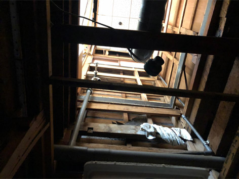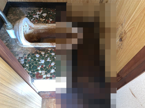 原因を探るため予定通りにトイレを解体して躯体構造を確認したところ、トイレから漏出した体液が木部に付着していることが確認されたのですぐに清掃を行いました。