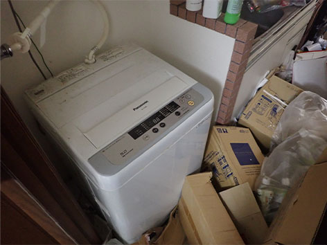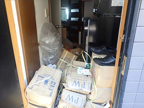 階段を上って扉を開けると玄関の半分以上が段ボールやゴミで埋まっており足の踏み場がない状態でした。