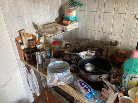 室内はいわゆるゴミ屋敷状態になっており、足の踏み場がないほど大量のモノが散乱していました。