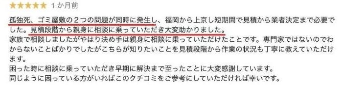 東京で遺品整理業者を探すなら、Googleレビューから業者の口コミを確認しましょう。