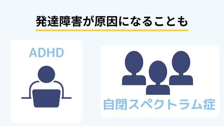 ですが、中には精神的な病だけではなく、以下のような発達障害の症状が関わっていることもあります。