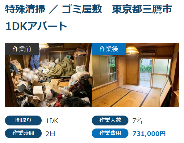 ですので、業者選びをする際は、ゴミ屋敷清掃の実績がどれくらいあるのか確認してください。
